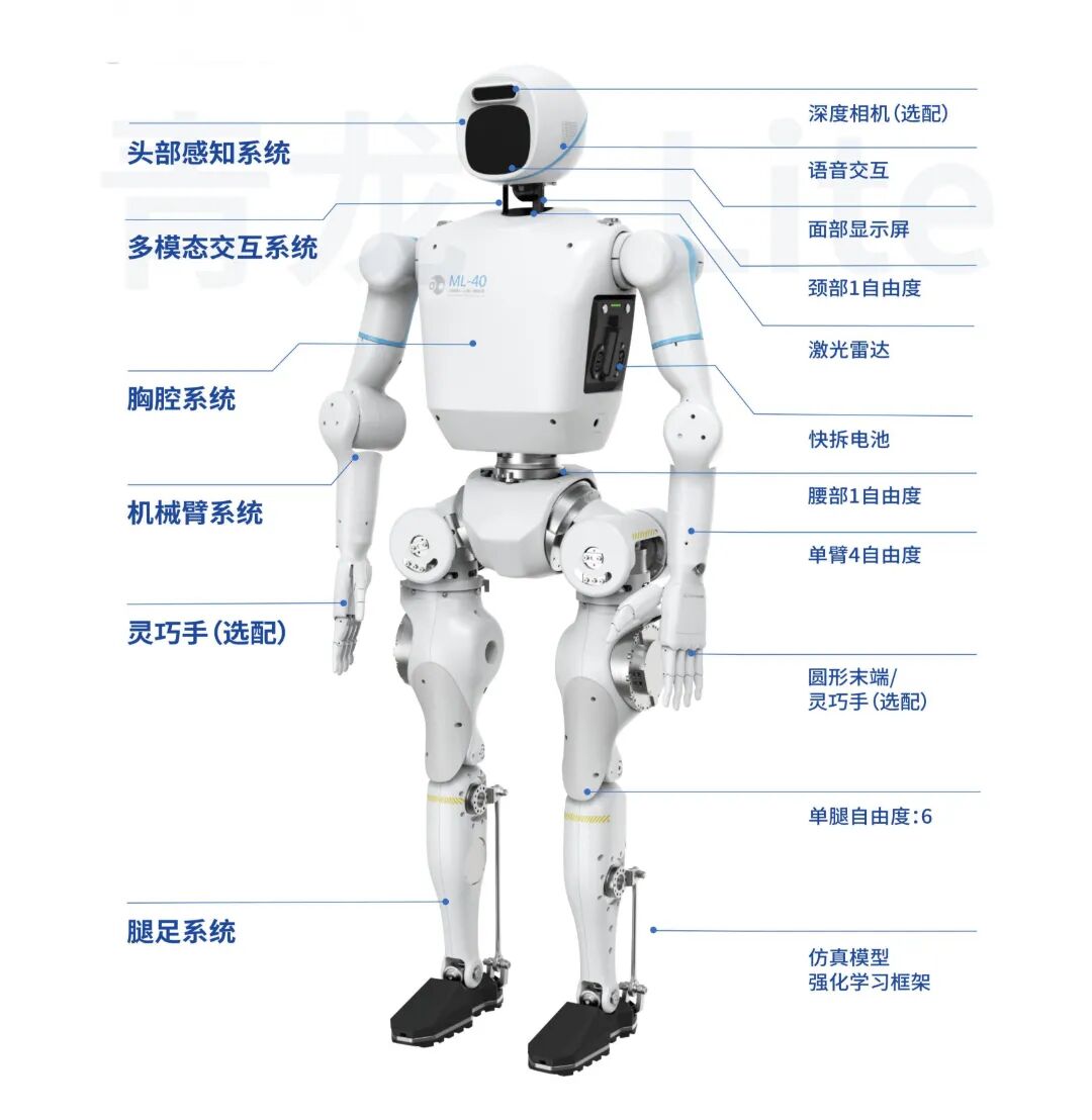 “青龙Lite”是由浙工大生态工业创新研究院、地方共建人形机器人创新中心与浙江禾川人形机器人有限公司三方联合实验室共同研发的一款低成本、高性能开源机器人平台,专为教育科研、场景服务及智能交互场景设计。作为一款轻量化人形机器人,“青龙Lite”提供完整的开源框架,配备丰富的开发文档及SDK接口,助力高校、企业及开发者快速实现二次开发与功能拓展。同时,其多模态交互系统 (语音、表情、动作协同)与模块化设计,可灵活适配文旅导览、展馆讲解、服务接待等场景,成为智慧服务领域的智能伙伴。